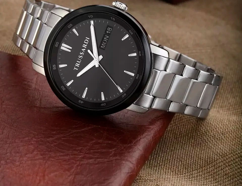Итальянские мужские часы Trussardi T-Couple R2453147015 - это стильный мужской аксессуар, который сочетает элегантный дизайн и практичность. Корпус выполнен из нержавеющей стали, что обеспечивает долговечность и утончённый внешний вид. БезельБезельВнешний ободок, закрепляющий стекло. В спортивных часах так называется поворотное кольцо с делениями на циферблате, выполняет роль таймера – замеряет отрезки времени на шкале. Неподвижный безель – элемент декора. Однонаправленно вращающийся безель на дайверских часах позволяет фиксировать моменты погружения и выныривания на поверхность. с IP-покрытиемIP-покрытиеМетод ионного напыления. Демонстрирует повышенную устойчивость к истиранию, окислению и химическим веществам. Под воздействием высокого давления и температуры около 1500°C молекулы металла надёжно соединяются с частицами корпуса часов. чёрного цвета.  Надежное минеральное стеклоМинеральное стеклоМинеральное стекло представляет собой искусственно выращенный минерал кварца. Такое стекло отличается особой устойчивостью к повреждениям и царапинам. Уступает по некоторым качествам сапфировому стеклу. защищает циферблат от царапин и обеспечивает долговечность. Модель оснащена кварцевым механизмом, обеспечивающим высокую точность хода. Браслет из нержавеющей стали с раскладной застёжкойРаскладная застёжкаТакой тип застёжки используется только на браслетах из металла. Она никогда не раскрывается полностью, происходит разделение на 2 и более частей. Раскладывающая застёжка снизит вероятность потери часов к минимуму. обеспечивает комфортное ношение. Водозащита 50 метров позволит защитить корпус от случайных брызг или капель дождя. Окошко даты и дня недели находится в положении 3 часа. Стрелки и метки оснащены люминесцентным покрытиемЛюминесцентное покрытиеПозволяет считывать показания времени в темноте. Производители наносят на стрелки, часовые индексы, безель или поверхность циферблата светонакопительный состав, дающий холодное свечение., обеспечивающим отличную видимость даже при слабом освещении. Эта модель – отличный выбор для тех, кто ищет сочетание стиля, качества и функциональности. Часы станут не только полезным аксессуаром, но и выразительным элементом вашего имиджа.