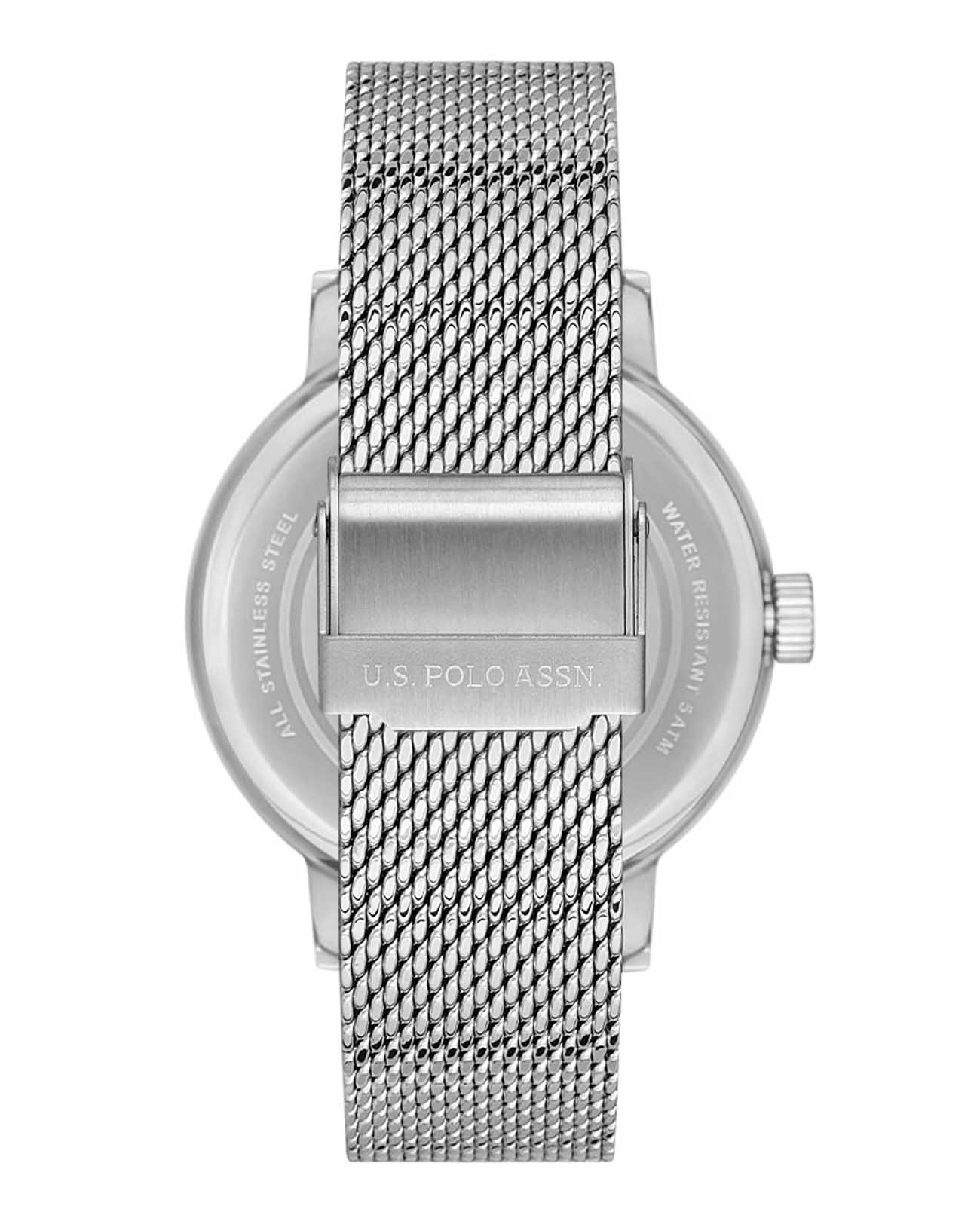 Мужские часы U.S. Polo Assn Fundamental USPA1070-02, кварцевый механизм с высокой точностью. Минеральное стеклоМинеральное стеклоМинеральное стекло представляет собой искусственно выращенный минерал кварца. Такое стекло отличается особой устойчивостью к повреждениям и царапинам. Уступает по некоторым качествам сапфировому стеклу. устойчивое к появлению царапин, обладающее высокой прозрачностью. Корпус изготовлен из нержавеющей стали. Центральные часовая, минутная и секундная стрелки. Окошко даты находится в положении 3 часа. Стрелки с люминесцентным покрытиемЛюминесцентное покрытиеПозволяет считывать показания времени в темноте. Производители наносят на стрелки, часовые индексы, безель или поверхность циферблата светонакопительный состав, дающий холодное свечение.. Класс водозащиты: 50 метров, позволит защитить корпус от случайных брызг или капель дождя. Стальной браслет миланского плетения на раскладном замкеРаскладной замокДанный вариант застежки используется только на часах с металлическим браслетом. Отличительная особенность такого крепления в том, что длина браслета становится универсальной и вы можете самостоятельно отрегулировать нужный вам размер – застежка просто двигается по браслету часов..