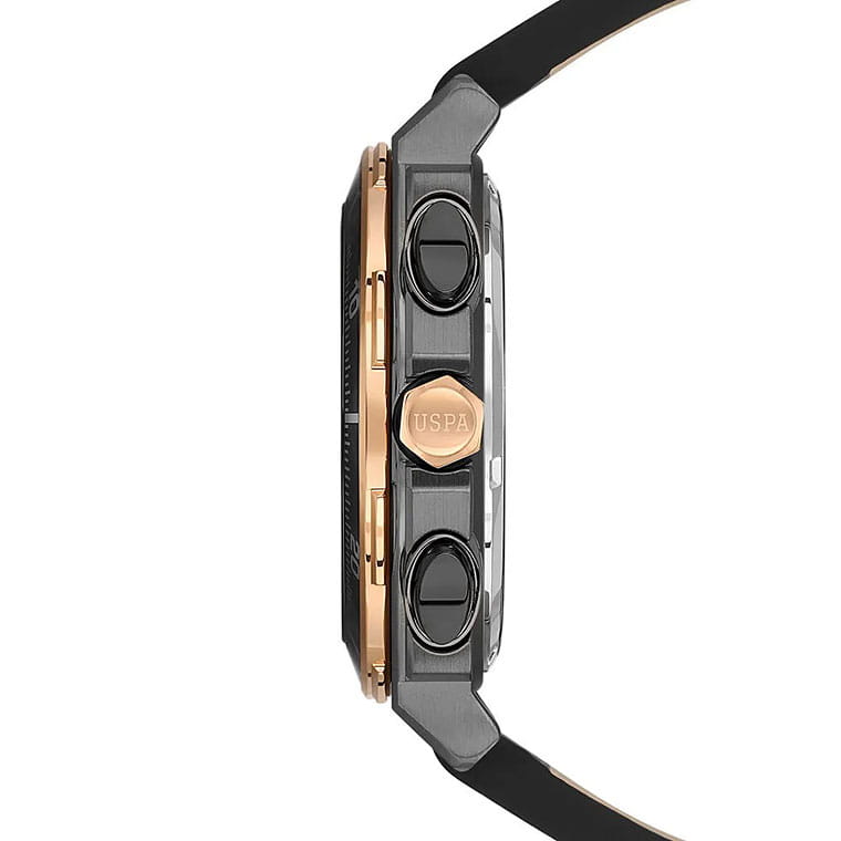 Мужские элегантные американские часы U.S. Polo Assn. Crossing USPA1092-03 обладают кварцевым механизмом с высокой точностью. Минеральное стеклоМинеральное стеклоМинеральное стекло представляет собой искусственно выращенный минерал кварца. Такое стекло отличается особой устойчивостью к повреждениям и царапинам. Уступает по некоторым качествам сапфировому стеклу. устойчивое к появлению царапин, обладающее высокой прозрачностью. Изысканный корпус изготовлен из нержавеющей стали с безелемБезельВнешний ободок, закрепляющий стекло. В спортивных часах так называется поворотное кольцо с делениями на циферблате, выполняет роль таймера – замеряет отрезки времени на шкале. Неподвижный безель – элемент декора. Однонаправленно вращающийся безель на дайверских часах позволяет фиксировать моменты погружения и выныривания на поверхность. с PVD-покрытиемPVDУльтратонкое покрытие наносится в технике вакуумного напыления, сочетает в себе нитрид титана особой прочности со слоем золота или оксида хрома. Несёт в себе декоративную или защитную функцию.. Стильные центральные часовая, минутная и секундная стрелки. 24-х часовой формат времени, дата и день недели вынесены на отдельный циферблат. Часы оснащены люминесцентным покрытиемЛюминесцентное покрытиеПозволяет считывать показания времени в темноте. Производители наносят на стрелки, часовые индексы, безель или поверхность циферблата светонакопительный состав, дающий холодное свечение., обеспечивающим хорошую читаемость в темноте. Класс водозащиты: 50 метров, позволит защитить корпус от случайных брызг или капель дождя. Кожаный ремень со стандартной застежкой обеспечивает комфорт и удобство в использовании, добавляя завершающий штрих к этому стильному и высокоэффективному аксессуару. Это практичный и стильный инструмент для активной повседневности, объединяющий точный механизм и удобство.