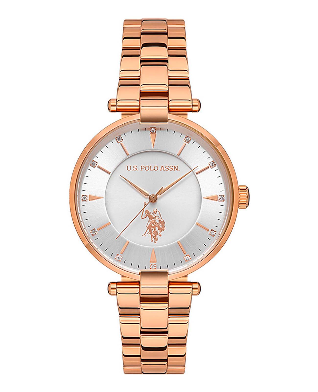 Женские часы U.S. Polo Assn Stile USPA2048-01, кварцевый механизм с высокой точностью. Минеральное стеклоМинеральное стеклоМинеральное стекло представляет собой искусственно выращенный минерал кварца. Такое стекло отличается особой устойчивостью к повреждениям и царапинам. Уступает по некоторым качествам сапфировому стеклу. устойчивое к появлению царапин, обладающее высокой прозрачностью. Корпус изготовлен из нержавеющей стали с IP-покрытиемIP-покрытиеМетод ионного напыления. Демонстрирует повышенную устойчивость к истиранию, окислению и химическим веществам. Под воздействием высокого давления и температуры около 1500°C молекулы металла надёжно соединяются с частицами корпуса часов.. Циферблат украшен кристаллами. Класс водозащиты: 30 метров, позволит защитить корпус от случайных брызг или капель дождя. Стальной браслет с IP-покрытиемIP-покрытиеМетод ионного напыления. Демонстрирует повышенную устойчивость к истиранию, окислению и химическим веществам. Под воздействием высокого давления и температуры около 1500°C молекулы металла надёжно соединяются с частицами корпуса часов. на раскладной застёжкеРаскладная застёжкаТакой тип застёжки используется только на браслетах из металла. Она никогда не раскрывается полностью, происходит разделение на 2 и более частей. Раскладывающая застёжка снизит вероятность потери часов к минимуму..