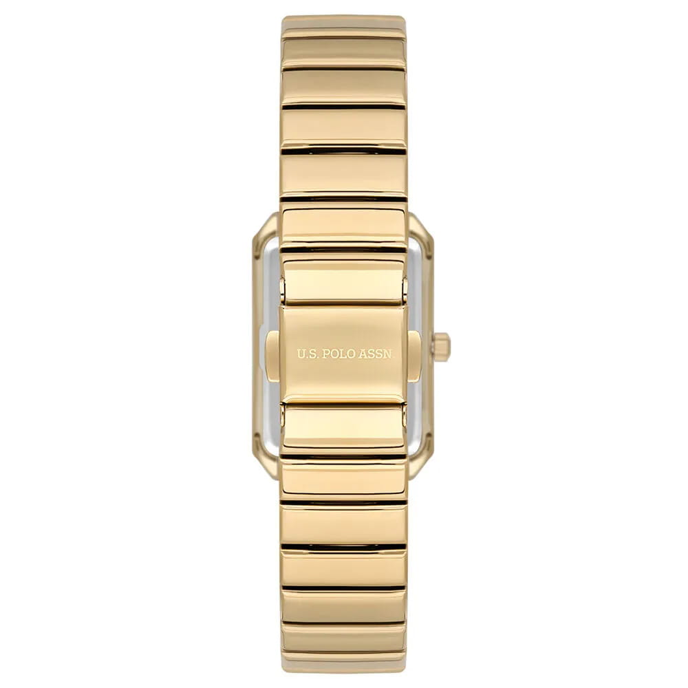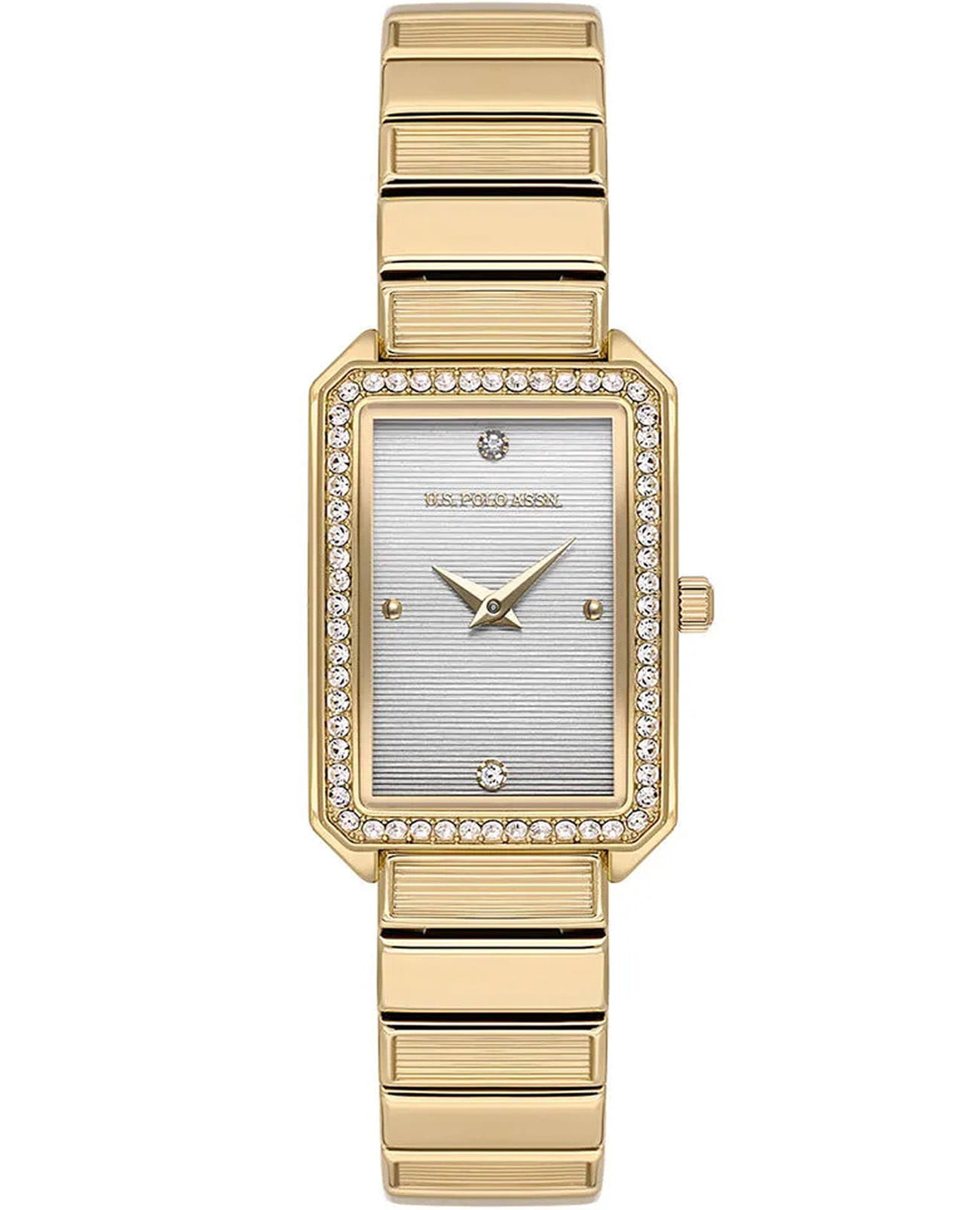Женские наручные часы U.S. Polo Assn. Stile USPA2108-05 — это стильный и лаконичный аксессуар, выполненный в форме квадрата. Модель изготовлена из стали с IP-покрытиемIP-покрытиеМетод ионного напыления. Демонстрирует повышенную устойчивость к истиранию, окислению и химическим веществам. Под воздействием высокого давления и температуры около 1500°C молекулы металла надёжно соединяются с частицами корпуса часов., а безельБезельВнешний ободок, закрепляющий стекло. В спортивных часах так называется поворотное кольцо с делениями на циферблате, выполняет роль таймера – замеряет отрезки времени на шкале. Неподвижный безель – элемент декора. Однонаправленно вращающийся безель на дайверских часах позволяет фиксировать моменты погружения и выныривания на поверхность. украшен изысканными кристаллами, придающими часам роскошный вид. Циферблат с лаконичными центральными часовой и минутной стрелками. Защиту циферблата обеспечивает минеральное стеклоМинеральное стеклоМинеральное стекло представляет собой искусственно выращенный минерал кварца. Такое стекло отличается особой устойчивостью к повреждениям и царапинам. Уступает по некоторым качествам сапфировому стеклу., устойчивое к мелким повреждениям. Часы оснащены кварцевым механизмом, гарантирующим точность и минимальное обслуживание. Водонепроницаемость 3 АТМ позволяет использовать часы в повседневных условиях — при мытье рук или под лёгким дождём. Браслет выполнен из стали с IP-покрытиемIP-покрытиеМетод ионного напыления. Демонстрирует повышенную устойчивость к истиранию, окислению и химическим веществам. Под воздействием высокого давления и температуры около 1500°C молекулы металла надёжно соединяются с частицами корпуса часов. и оснащён раскладной застёжкойРаскладная застёжкаТакой тип застёжки используется только на браслетах из металла. Она никогда не раскрывается полностью, происходит разделение на 2 и более частей. Раскладывающая застёжка снизит вероятность потери часов к минимуму., обеспечивающей комфорт и уверенную фиксацию на запястье. Толщина корпуса составляет 8 мм, а его размер 23 мм, что делает часы компактными и удобными в носке. Эти часы станут универсальным аксессуаром для уверенных в себе женщин, которые ценят сочетание стиля, качества и эстетики — идеальный выбор для повседневного образа и торжественных случаев.