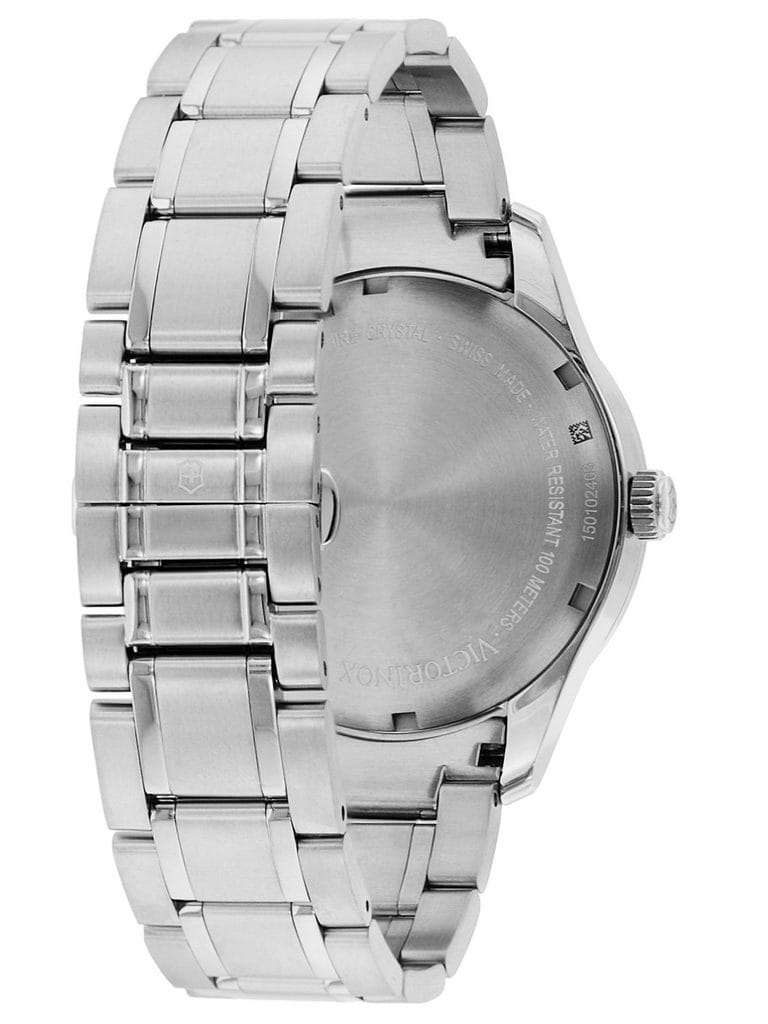 Мужские швейцарские часы Victorinox Alliance 241712.1, кварцевый механизм с высокой точностью. Сапфировое стеклоСапфировое стеклоПрочный и надёжный материал из кристалла сапфира синтетического происхождения, характеризующийся особой твёрдостью и устойчивостью к царапинам и повреждениям. устойчивое к появлению царапин, обладающее высокой прозрачностью. Класс водозащиты: 100 метров, позволит плавать, нырять и заниматься другими водными видами спорта. Корпус часов изготовлен из нержавеющей стали 316L. Стрелки с люминесцентным покрытиемЛюминесцентное покрытиеПозволяет считывать показания времени в темноте. Производители наносят на стрелки, часовые индексы, безель или поверхность циферблата светонакопительный состав, дающий холодное свечение..