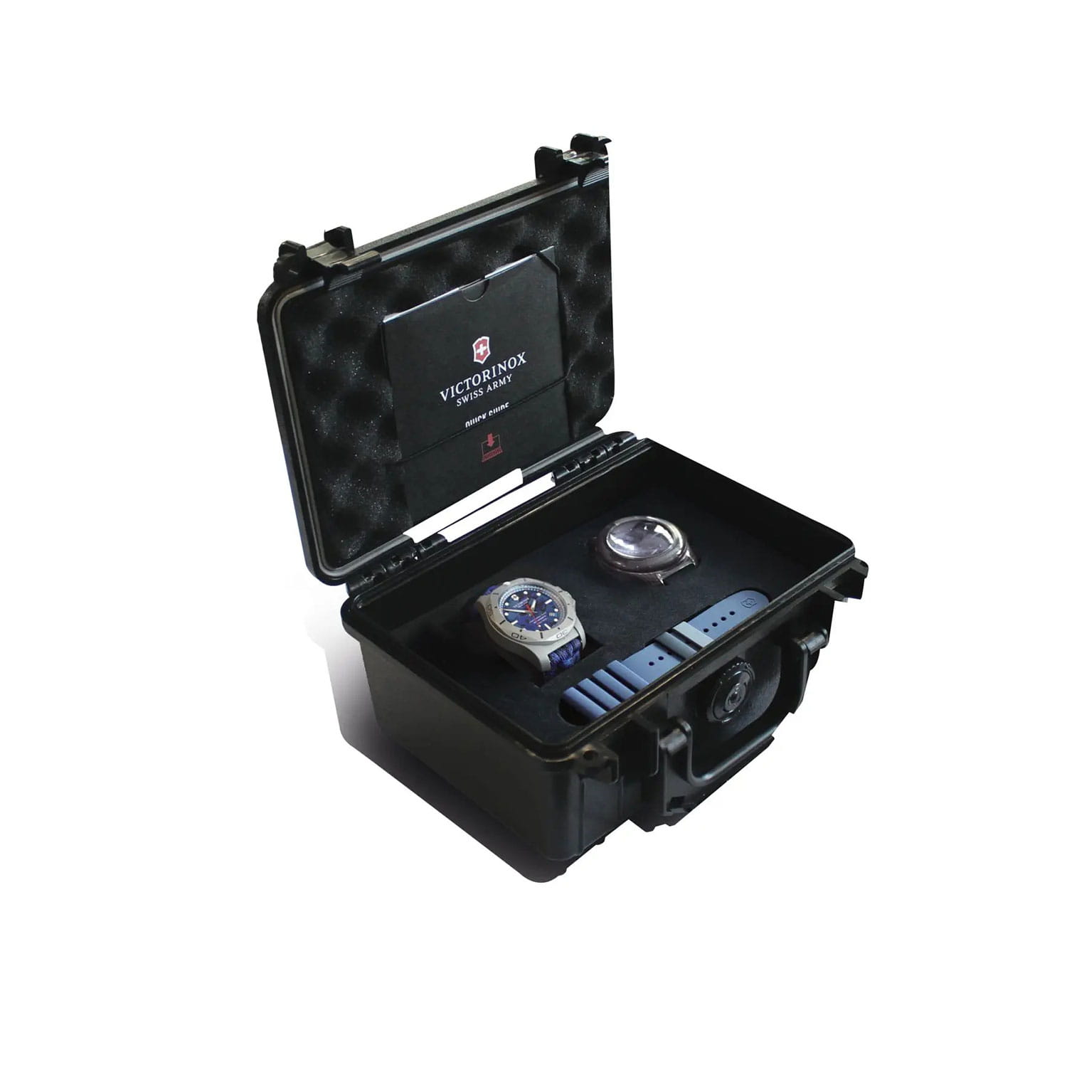 Мужские швейцарские часы Victorinox I.N.O.X. 241813.2. Сапфировое стеклоСапфировое стеклоПрочный и надёжный материал из кристалла сапфира синтетического происхождения, характеризующийся особой твёрдостью и устойчивостью к царапинам и повреждениям. с трёхслойным антибликовым покрытием. Корпус часов выполнен из нержавеющей стали 316L. Ремешок изготовлен из плетенной паракордовой стропы, длиной 2,5 метра и способной выдержать 250 кг. Влагозащита: 200 метров, позволит плавать, нырять и заниматься другими водными видами спорта. Окошко даты находится в положении между 4 и 5 часов. Стрелки и метки с люминесцентным покрытиемЛюминесцентное покрытиеПозволяет считывать показания времени в темноте. Производители наносят на стрелки, часовые индексы, безель или поверхность циферблата светонакопительный состав, дающий холодное свечение.. В комплекте съемный защитный бампер с увеличительным стеклом и резиновый ремешок.
