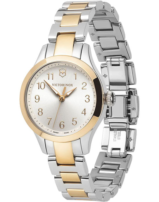 Женские швейцарские часы с сапфировым стеклом. Victorinox ALLIANCE 241842, кварцевый механизм с высокой точностью. Сапфировое стекло устойчивое к появлению царапин, обладающее высокой прозрачностью. Класс водозащиты: 100 метров, позволит плавать, нырять и заниматься другими водными видами спорта. Корпус часов изготовлен из стали, цвета.