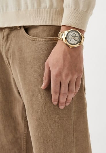 Модель Wainer WA.19401-F сочетает элегантность, швейцарское качество и современный дизайн. Корпус диаметром 43 мм выполнен из нержавеющей стали 316L с золотистым PVD-покрытиемPVDУльтратонкое покрытие наносится в технике вакуумного напыления, сочетает в себе нитрид титана особой прочности со слоем золота или оксида хрома. Несёт в себе декоративную или защитную функцию., придающим часам стильный и современный вид. Циферблат оформлен в классическом стиле с лаконичными часовыми метками, а сапфировое стеклоСапфировое стеклоПрочный и надёжный материал из кристалла сапфира синтетического происхождения, характеризующийся особой твёрдостью и устойчивостью к царапинам и повреждениям. защищает дисплей от царапин и механических повреждений. Часы оснащены точным кварцевым механизмом, обеспечивающим надежность и стабильность хода. Браслет из нержавеющей стали с золотистым PVD-покрытиемPVDУльтратонкое покрытие наносится в технике вакуумного напыления, сочетает в себе нитрид титана особой прочности со слоем золота или оксида хрома. Несёт в себе декоративную или защитную функцию. гарантирует комфортное ношение. Водонепроницаемость до 50 метров защищает часы от случайных брызг. Wainer WA.19401-F — это стильный аксессуар для мужчин, ценящих швейцарскую точность, современный стиль и надежность.