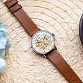 Женские наручные часы Zeppelin Princess of the Sky 7461-5 сочетают в себе элегантный дизайн и надежность автоматического механизма. Модель обладает круглым корпусом диаметром 36 мм, изготовленным из нержавеющей стали, что обеспечивает высокую устойчивость к внешним воздействиям. Браслет выполнен из коричневой кожи с классической застежкой, гарантирующей комфортное ношение и стильный внешний вид. Циферблат украшен двенадцатью камнями Swarovski, добавляющими особый шарм и элегантность. Для защиты используется минеральное стеклоМинеральное стеклоМинеральное стекло представляет собой искусственно выращенный минерал кварца. Такое стекло отличается особой устойчивостью к повреждениям и царапинам. Уступает по некоторым качествам сапфировому стеклу. с антибликовое покрытиеАнтибликовое покрытиеСлой оксида металла в 0,13-0,3 микрон, благодаря которому стекло часов не бликует и не отражает свет. Антибликовое покрытие уменьшает отражение света в 10 раз, обеспечивая отличную читаемость показателей циферблата., обеспечивающее защиту от царапин. Часы работают на автоматическом механизме, который не требует замены батареек и заряжается за счет движения руки. Водонепроницаемость часов достигает 5 атмосфер (50 метров), что позволяет использовать их в повседневной жизни, но не рекомендуется для плавания или дайвинга.