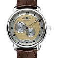 Мужские наручные автоматические часы Zeppelin ZEP-85685 из коллекции Friedrichshafen Automatic выполнены в классическом стиле и сочетают техническое мастерство с эстетикой ручной работы. Корпус круглой формы изготовлен из полированной нержавеющей стали и дополнен фирменными кольцами по краю — отличительной чертой бренда Zeppelin. Механизм — механический с автоподзаводом, калибр Miyota 82S7 , оснащённый 21 камнем, с частотой 21 600 полуколебаний в час и запасом хода до 42 часов. Прозрачная задняя крышка позволяет наблюдать за работой механизма, что подчёркивает его техническую проработку и стиль. Циферблат выполнен по технологии гильоше с узором Clous de Paris , придающим ему благородства. Цвет циферблата — золотистый гильоше с серебристыми элементами. Метки представлены арабскими цифрами, секундная стрелка вынесена на отдельный циферблат, а формат времени отображается в двух системах — 12-ти и 24-х часовой. Стрелки выполнены в стиле Breguet. Часы оснащены выпуклым минеральным стеклом повышенной прочности K1 минеральное стеклоМинеральное стеклоМинеральное стекло представляет собой искусственно выращенный минерал кварца. Такое стекло отличается особой устойчивостью к повреждениям и царапинам. Уступает по некоторым качествам сапфировому стеклу., устойчивым к мелким повреждениям. Заводная головка — рифлёная, из нержавеющей стали. Ремешок — из коричневой натуральной кожи с текстурой, имитирующей крокодилову кожу, дополнен классической застёжкой из нержавеющей стали. Водозащита — 50WR , что позволяет использовать часы в повседневных условиях без риска повреждения от случайных брызг воды. Габаритные размеры: диаметр 40 мм, толщина 11 мм, вес — 70 граммов. Это стильный и надёжный аксессуар для ценителей механических часов и тонких деталей дизайна.